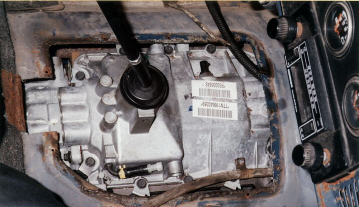 Here is a picture of the NV4500 Darren Perkins installed in his '82 CJ-7. Darren had to cut a notch towards the console to clear the shifter during installation.