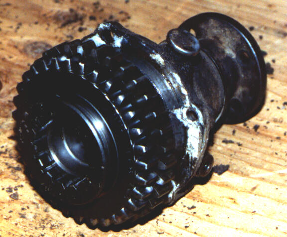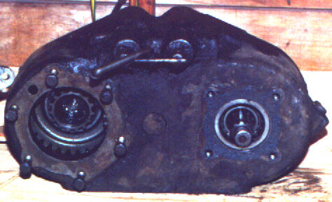 The main difference between this project and a stock Dana 20 rebuild is that the case had to be ground slightly for gear clearance. The upper and lower sliding gears in the 2.46 gear set are a bit larger than the stock 2.03:1 gears, and the case was not cast to accommodate them. Different Dana 20 cases will require different amounts of grinding. When discussing their new 3.15 gear set for Dana 20s Mepco mentioned that the Dana 20 cases from J-trucks seem to have needed less grinding. I also used a J-truck Dana 20 case and found that the grinding required amounted to little more than cleaning up casting flash. I have heard from other sources that CJ Dana 20 cases may require more grinding, but I can't substantiate that rumor through my own experience at this point.